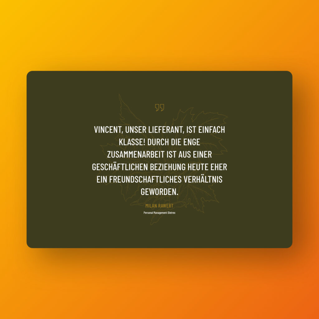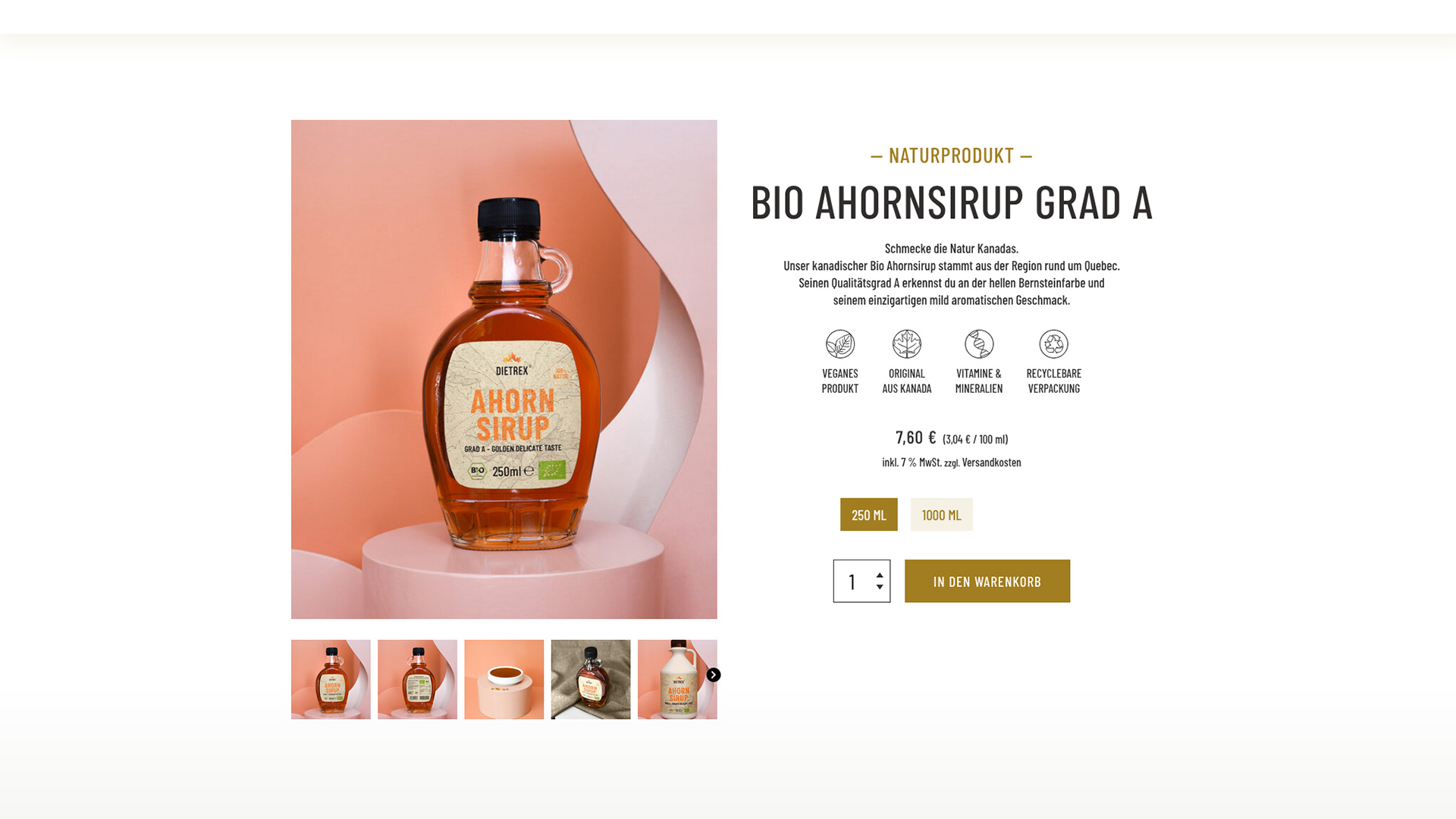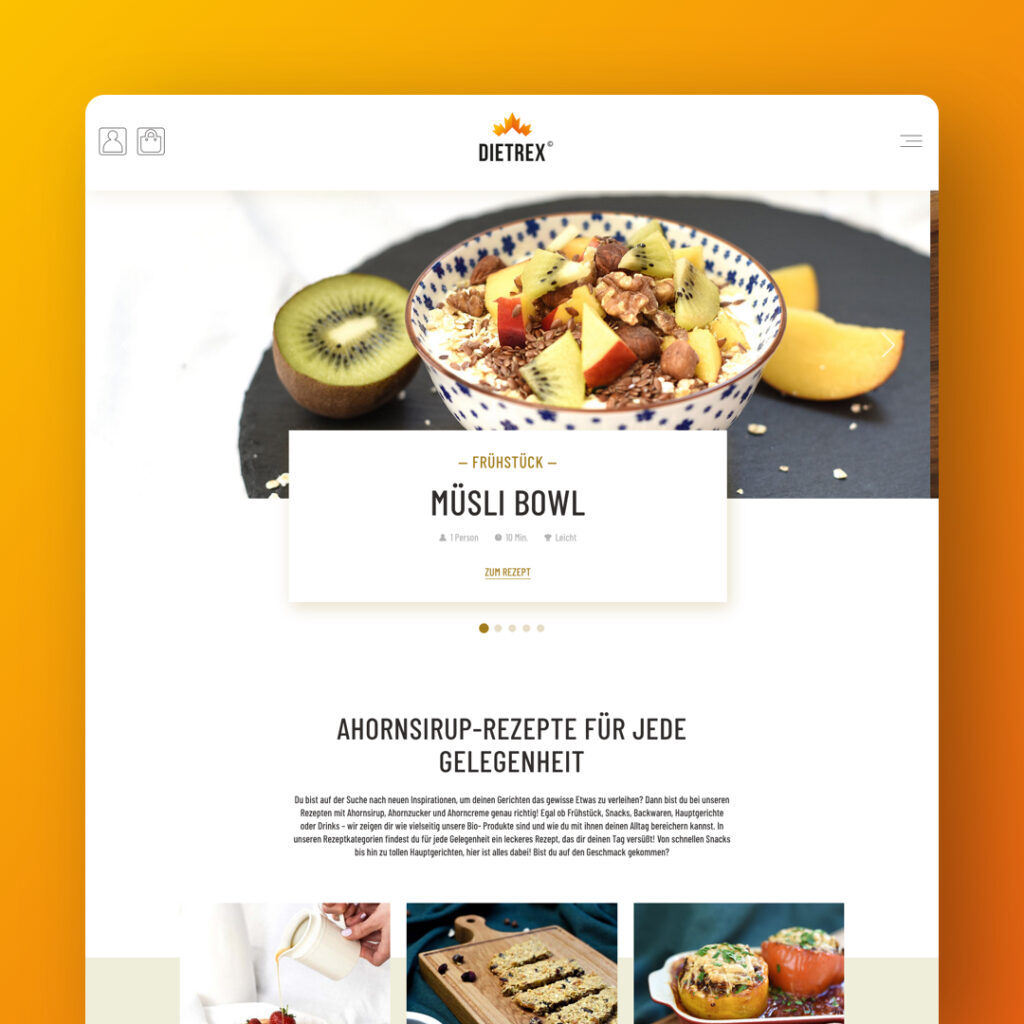 Für den Brand-Relaunch der Marke Dietrex entstanden neben Logo und neuem Packaging auch eine Marketingstrategie sowie eine komplett neu aufgebaute Shopseite. Gemeinsam mit Raffaela Milles und Louisa Schmitz entstand in den Bereichen Packaging, Brand und Webdesign eine neue Markenwelt rund um die leckeren Ahornprodukte des Unternehmens Dietrex.