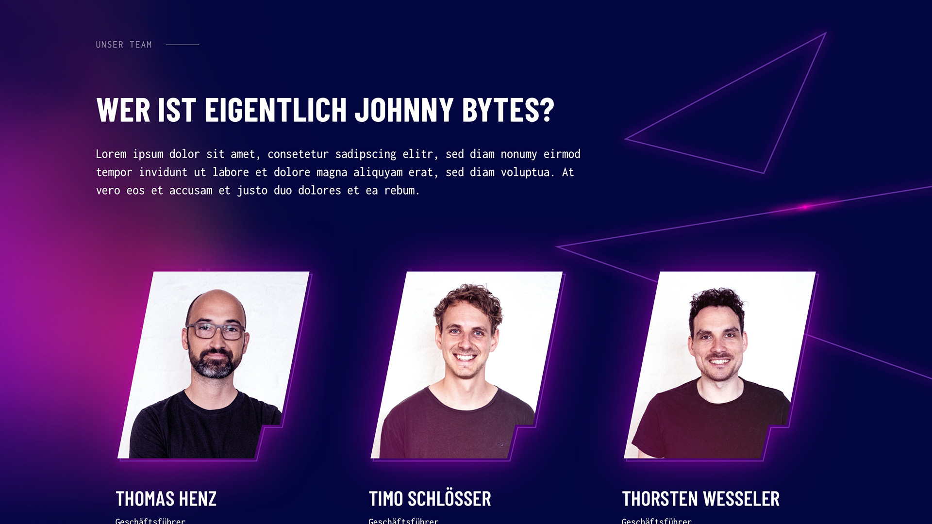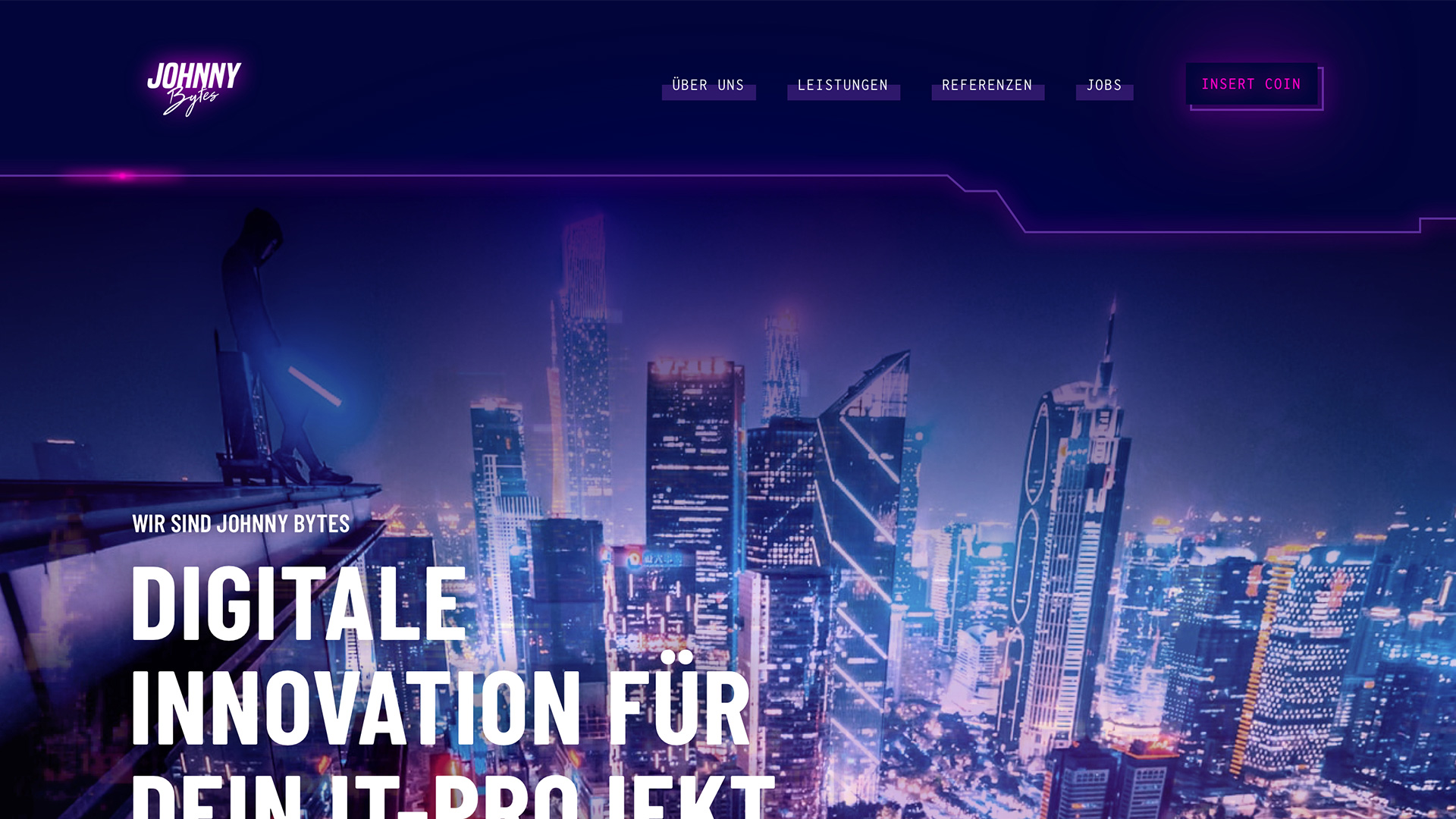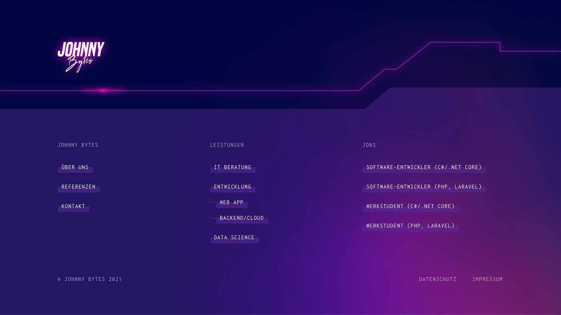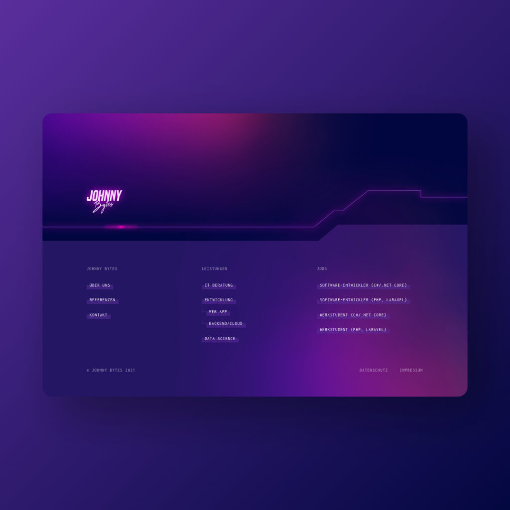 Die Zeiten der hellen, leichten Website-Gestaltung sind noch nicht ganz vorbei … daher ist es immer eine willkommene Abwechslung mal eine dunkle Website für einen Kunden auflegen zu dürfen. Johnny Bytes waren ihrer Zeit hier weit voraus und es passt einfach perfekt.