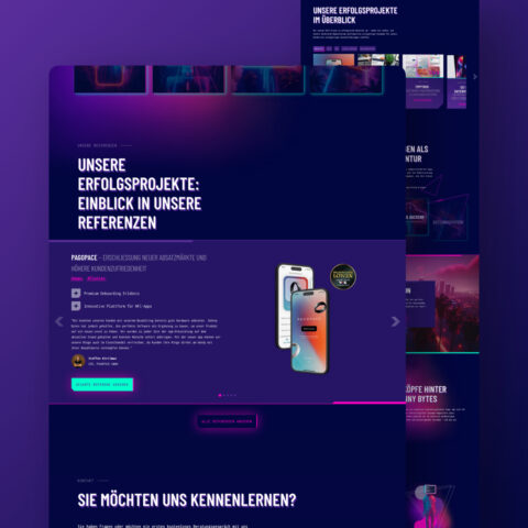 Während der Design-Phasen des Projekts lief so manche 80s Playlist im Hintergrund auf Spotify und half bei der Entstehung von flashigen CTAs, Neon-Effekten und dem generell coolen Look der Website. Ein Herzensprojekt, auf das ich immer gern zurück blicke.